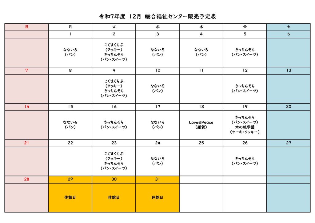 12月ロビー販売のお知らせ