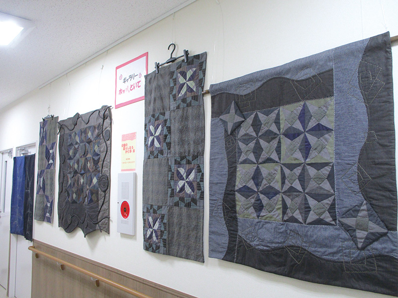 パッチワークの布の色や表情によって雰囲気が変わる作品の数々をお楽しみください。