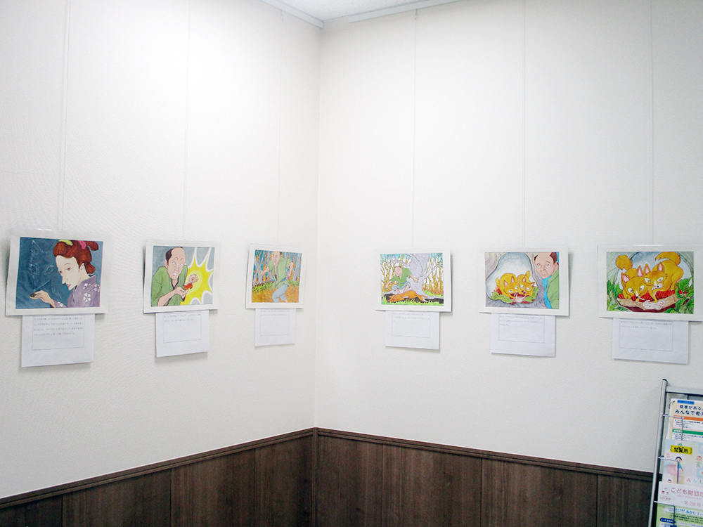 明石市桜町に伝わる昔話を題材にした紙芝居の展示です。やさしさが伝わります・・・