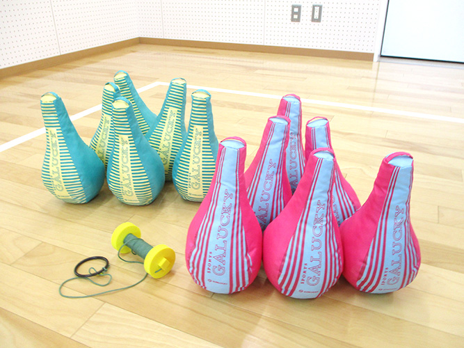 床でできるカーリングです。キャスター付きのフロッカーを送球し得点をきそいます。